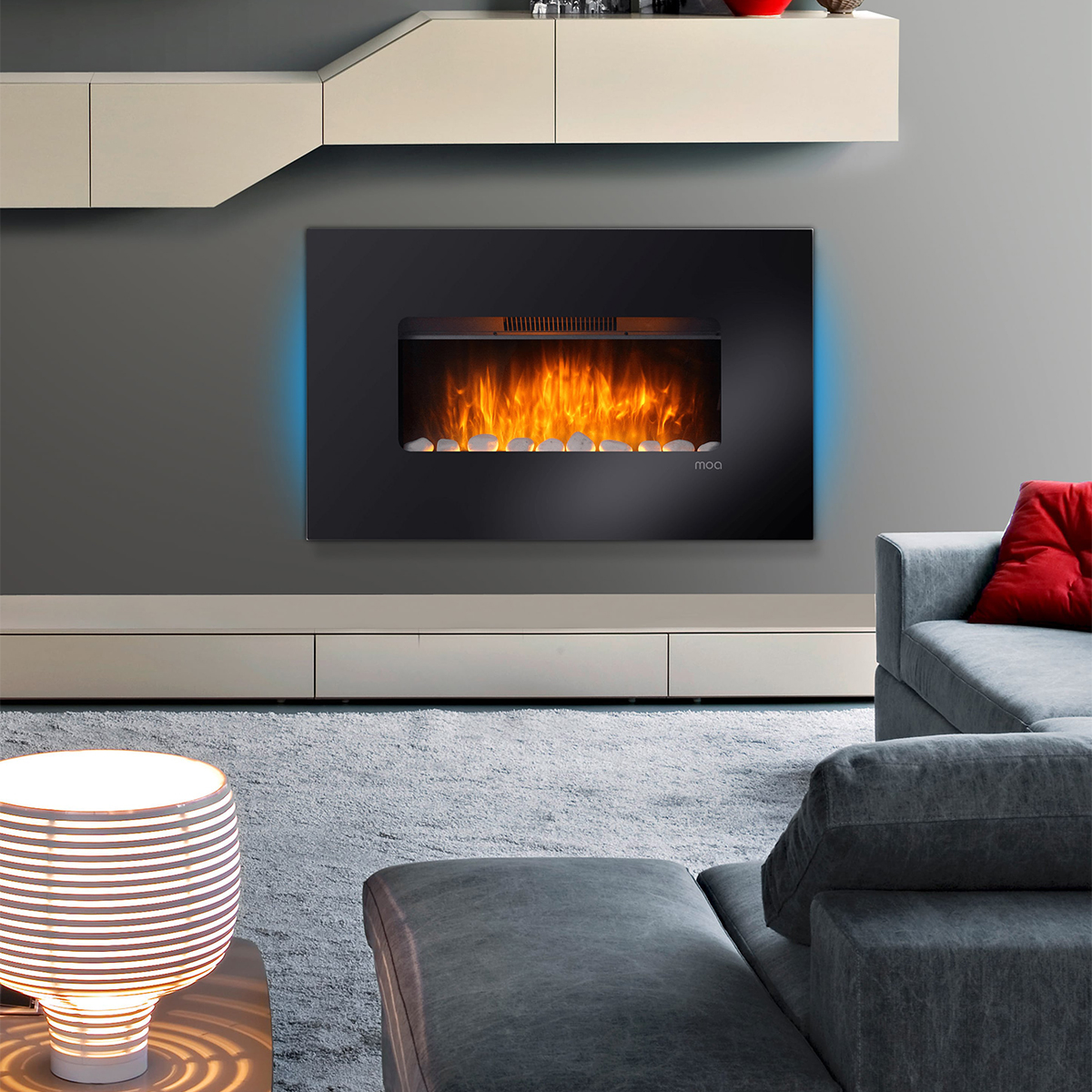 Met de hangende elektrische haard EF201FB van het merk MOA breng je in een handomdraai meer sfeer in een kamer en is het mogelijk om gelijktijdig de ruimte te verwarmen. Het product is elektrisch en heeft een ingebouwde ambilight-functie voor extra ambiance. Het biedt de voordelen van een open haard, namelijk de warmte en de sfeer, zonder de nadelen als een opening in je woning en altijd voldoende hout hebben. Met de meegeleverde afstandsbediening is de elektrische haard vanaf de bank te bedienen.